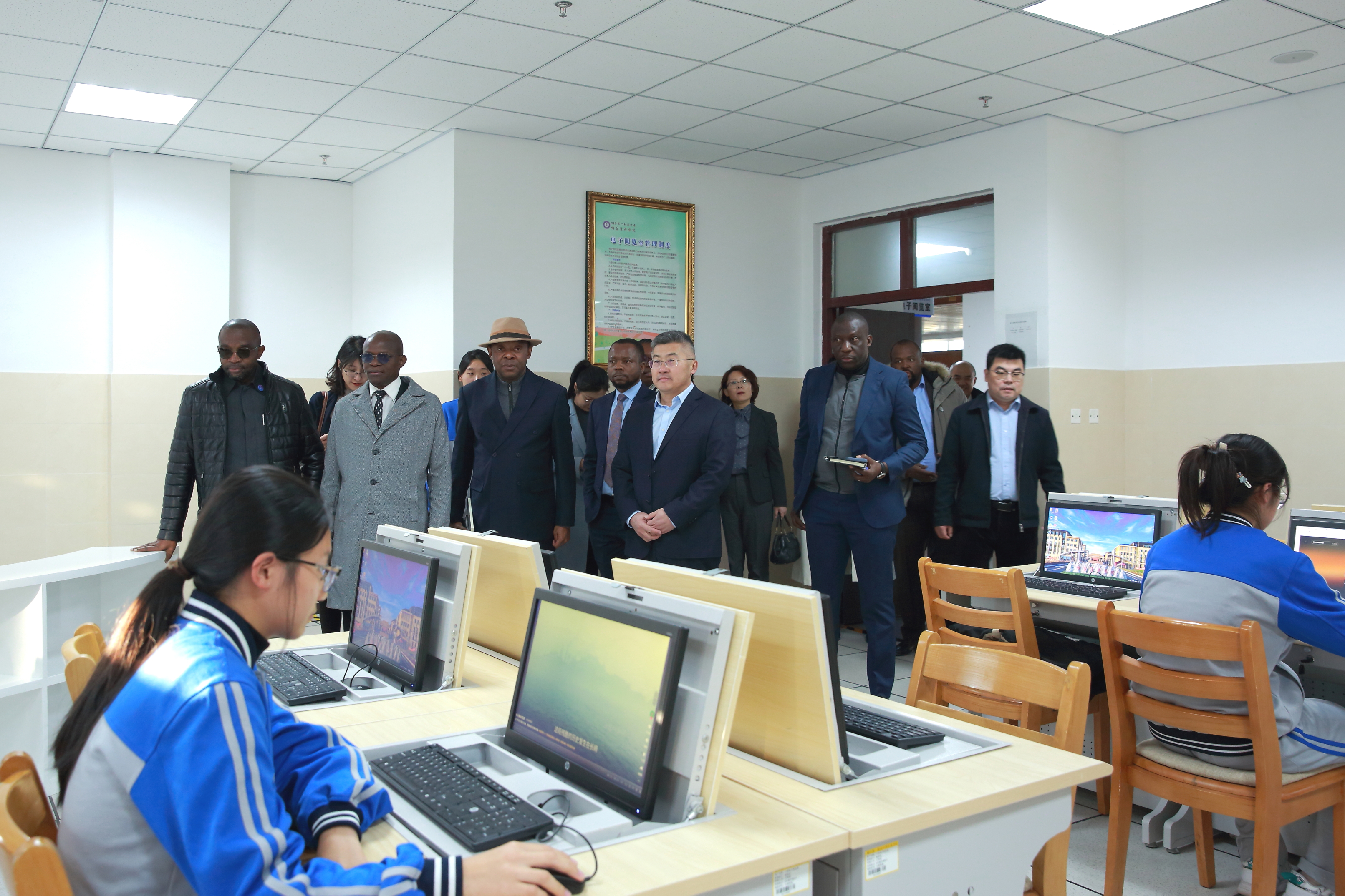 11月23日下午, 刚果民主共和国职业培训部部长埃基拉·利孔比奥·马克一行9人到烟台第一职业中专(烟台经济学校)交流访问。烟台市外办、烟台市教育局相关负责人陪同,学校校长刘伟德、副校长张晓宁接待了代表团。