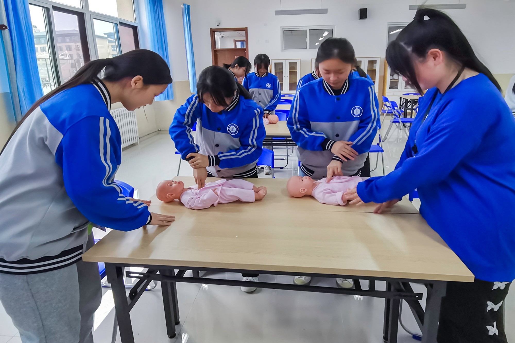 专业部建有7500m²高规格理实一体化教学楼,配套婴幼儿保育实训室、智慧琴房等数字化实训室100 余处,配备先进实训设备600余套。学生在各级各类比赛中获国家级金奖3 个,省市级一等奖56个。专业部立足医药卫生大类行业背景,毕业生就业呈现“多元化、高适配、强发展”特征,为医疗卫生机构、高端托育早教机构、教育管理科研等领域提供人才支撑。